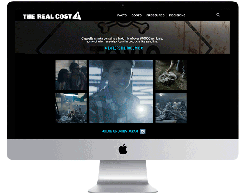 Targeted to “at risk” teenagers, the FDA's tobacco prevention campaign needed a strong digital presence. After a year of collecting analytics and A/B website testing, we combined those learnings with learnings from our Tumblr campaign to completely overhaul the site and optimize the experience. Bringing in a conceptual tie to our TV spots, including in-your-face GIFs, and keeping content "bite-sized" allowed us to connect with teens better, dramatically reducing bounce rates and increasing time spent on site.